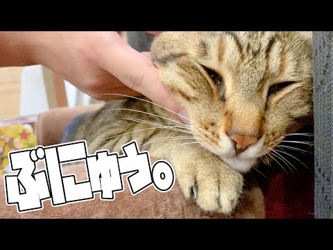 爆睡している猫のお腹を触ってみると…